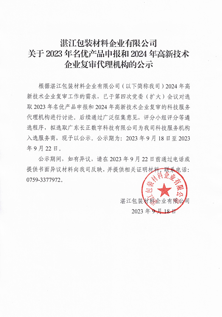 關(guān)于2023年名優(yōu)產(chǎn)品申報(bào)和2024年高新技術(shù)企業(yè)復(fù)審代理機(jī)構(gòu)的公示